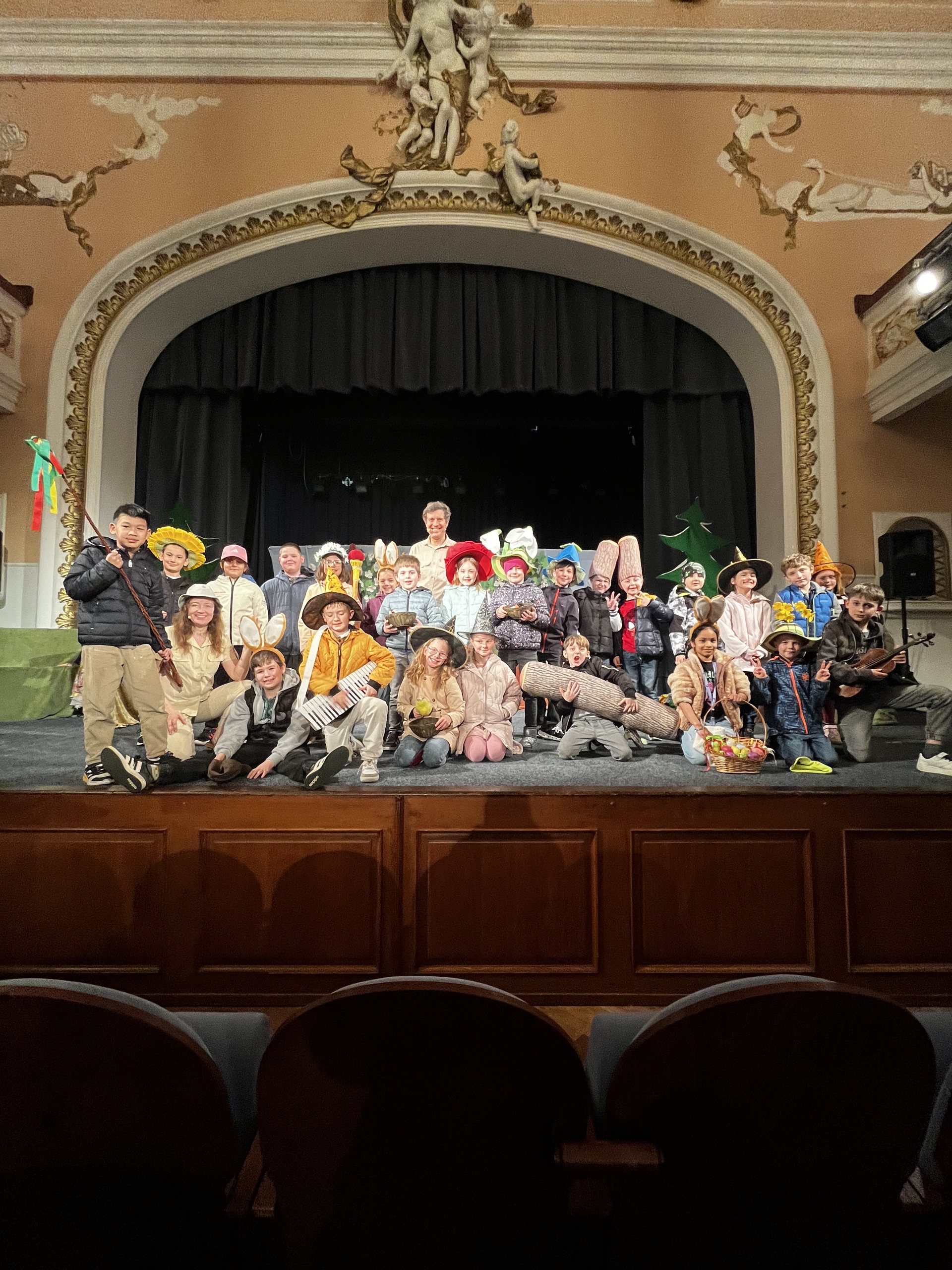Po skončení představení si děti mohly vyzkoušet divadelní rekvizity a měly možnost se společně vyfotit s herci, což pro ně bylo krásným zakončením celého zážitku.